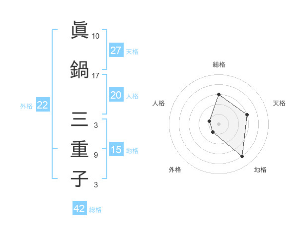 眞鍋 三重子さんの外格は22画の1点!