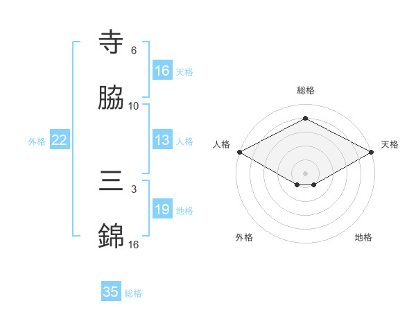 寺脇 三錦さんの天格は16画の5点!