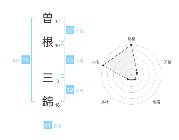 曽根 三錦さんの総格は41画の5点