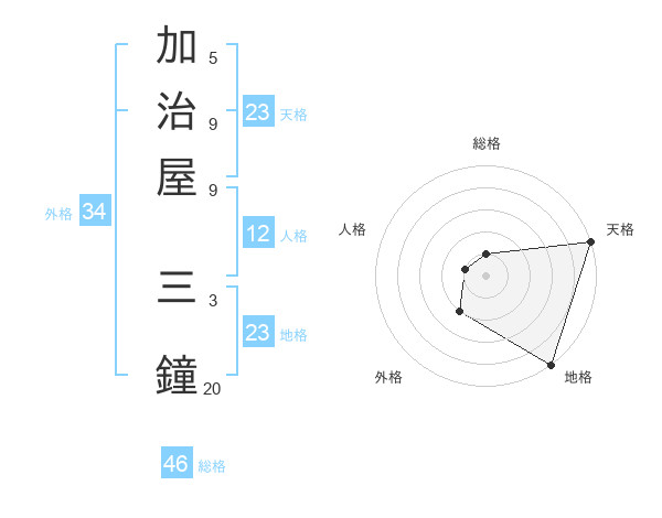 加治屋 三鐘さんを姓名の画数から五運を鑑定