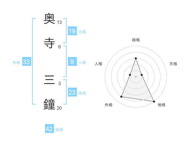 奥寺 三鐘さんを姓名の画数から五運を鑑定