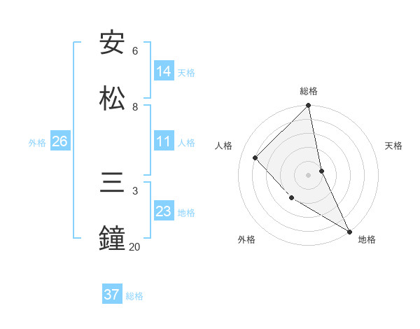 安松 三鐘さんを姓名の画数から五運を鑑定