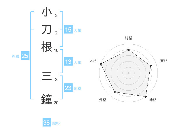 小刀根 三鐘さんを姓名の画数から五運を鑑定