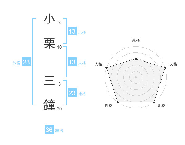 小栗 三鐘さんの天格は13画の5点!