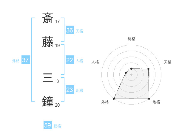 斎藤 三鐘さんを姓名の画数から五運を鑑定
