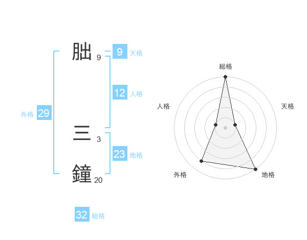 朏 三鐘さんの総格は32画の5点!