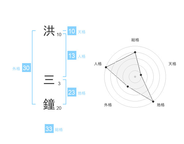 洪 三鐘さんの総格は33画の4点!