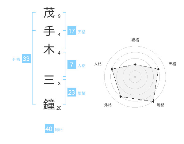 茂手木 三鐘さんの外格は33画の4点!