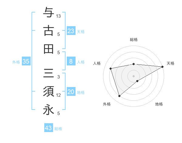 与古田 三須永さんを姓名の画数から五運を鑑定