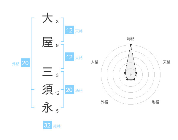 大屋 三須永さんの総格は32画の5点!