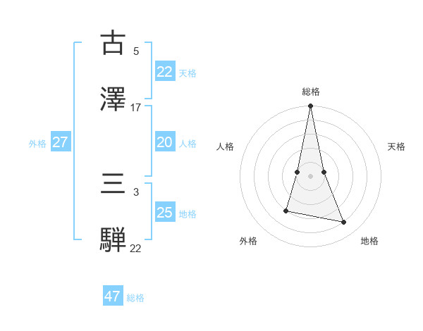古澤 三騨さんを姓名の画数から五運を鑑定