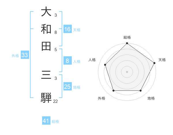 大和田 三騨さんを姓名の画数から五運を鑑定