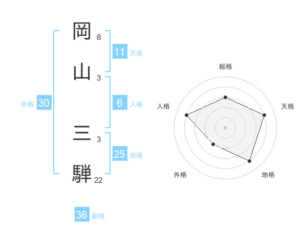 岡山 三騨さんの総格は36画の3点!