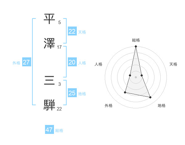 平澤 三騨さんを姓名の画数から五運を鑑定