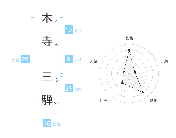 木寺 三騨さんを姓名の画数から五運を鑑定