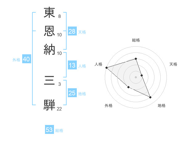 東恩納 三騨さんを姓名の画数から五運を鑑定