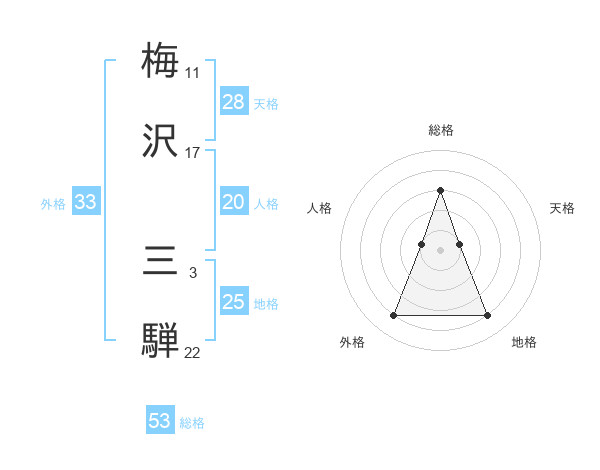 梅沢 三騨さんを姓名の画数から五運を鑑定