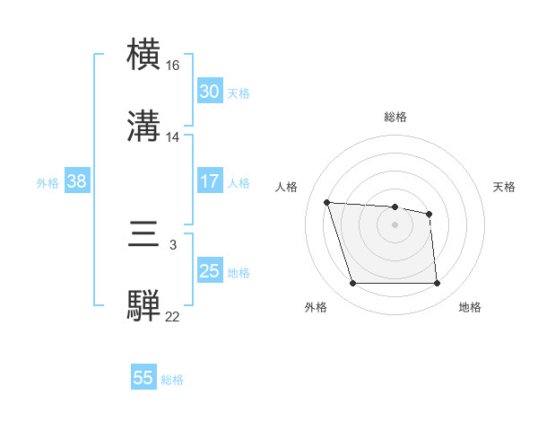 横溝 三騨さんの総格は55画の1点!