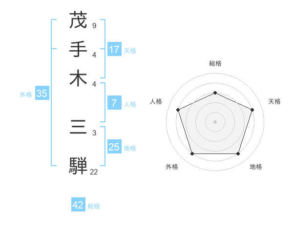茂手木 三騨さんを姓名の画数から五運を鑑定