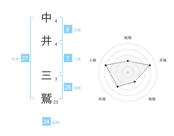 中井 三鷲さんを姓名の画数から五運を鑑定