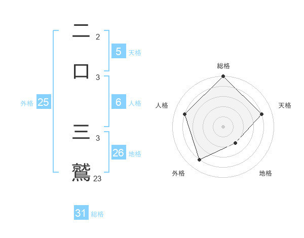 二口 三鷲さんを姓名の画数から五運を鑑定