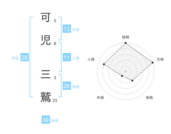 可児 三鷲さんの天格は13画の5点!