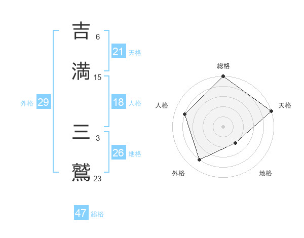 吉満 三鷲さんの総格は47画の5点!