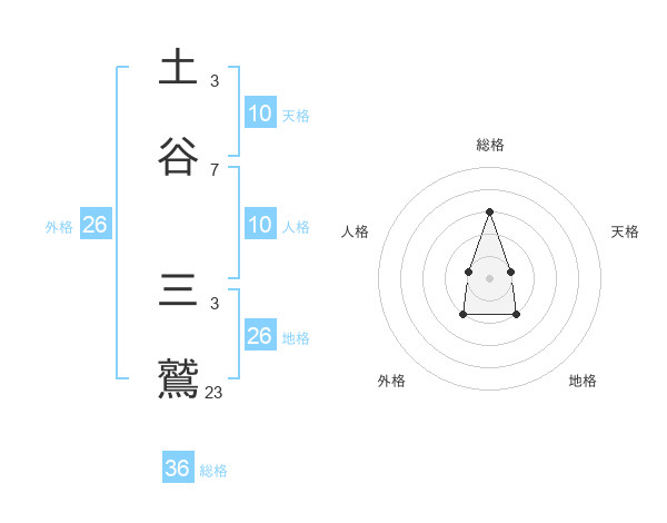 土谷 三鷲さんの総格は36画の3点!