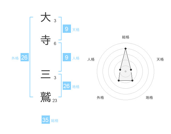 大寺 三鷲さんを姓名の画数から五運を鑑定