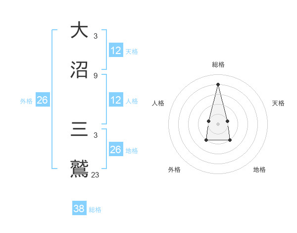 大沼 三鷲さんを姓名の画数から五運を鑑定