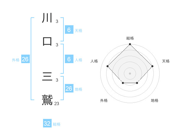 川口 三鷲さんの総格は32画の5点!
