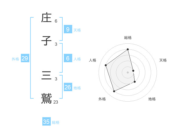 庄子 三鷲さんの総格は35画の4点!