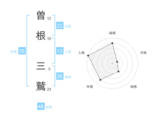 曽根 三鷲さんを姓名の画数から五運を鑑定
