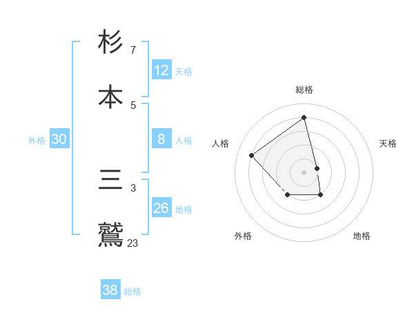 杉本 三鷲さんの総格は38画の4点!