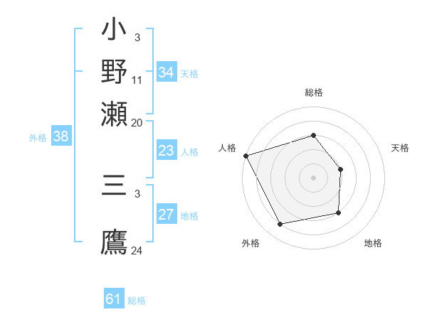 小野瀬 三鷹さんの総格は61画の3点!
