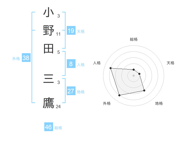 小野田 三鷹さんを姓名の画数から五運を鑑定