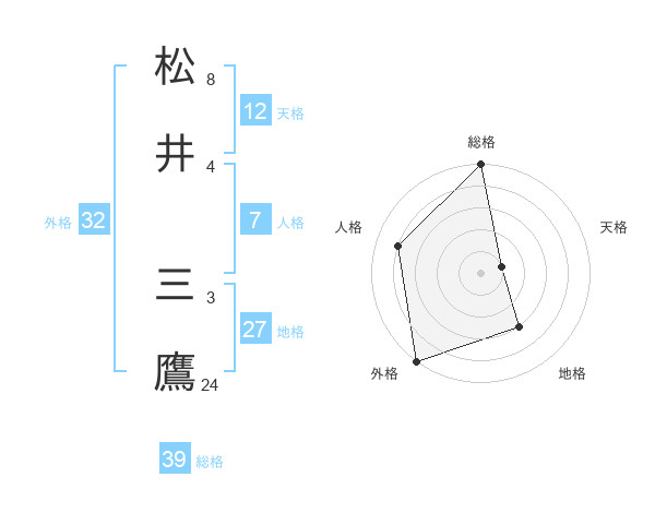 松井 三鷹さんを姓名の画数から五運を鑑定