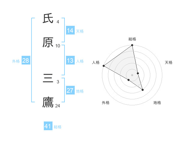 氏原 三鷹さんの総格は41画の5点!