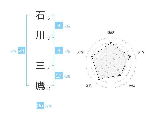 石川 三鷹さんの天格は8画の4点!