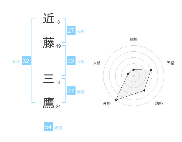近藤 三鷹さんを姓名の画数から五運を鑑定