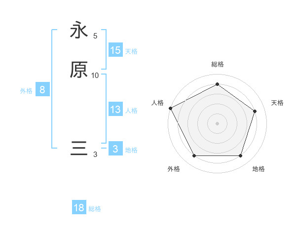 永原 三さんの総格は18画の4点!