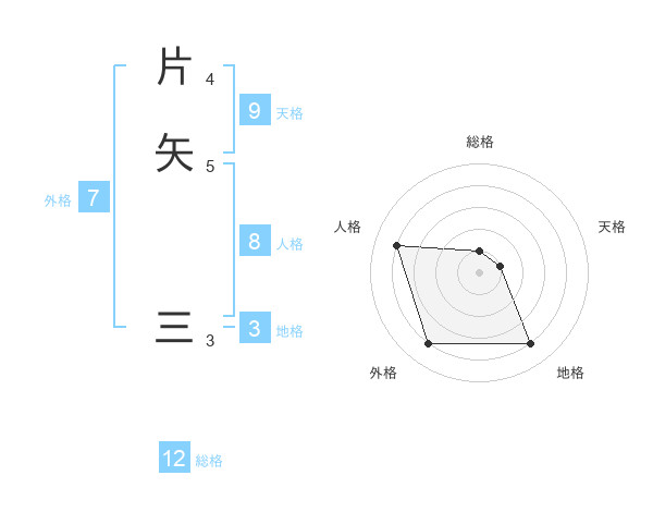 片矢 三さんの外格は7画の4点!