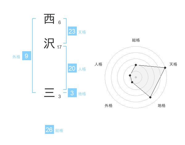 西沢 三さんの総格は26画の2点!