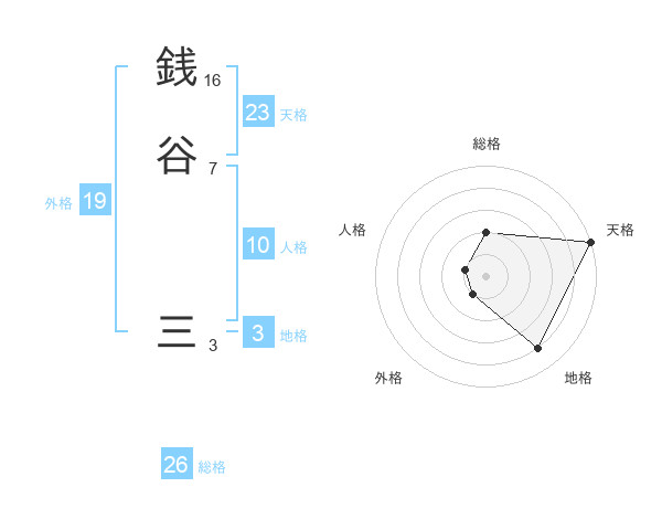 銭谷 三さんの総格は26画の2点!