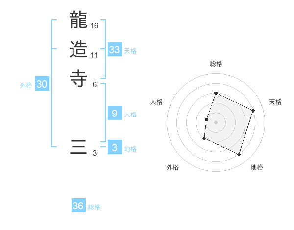 龍造寺 三さんの総格は36画の3点!