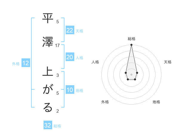 平澤 上がるさんの総格は32画の5点!