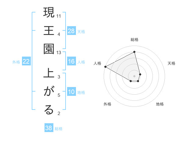 現王園 上がるさんの総格は38画の4点!