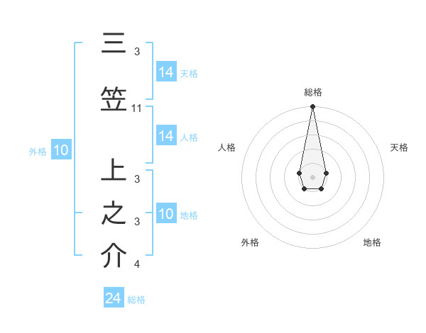 三笠 上之介さんを姓名の画数から五運を鑑定
