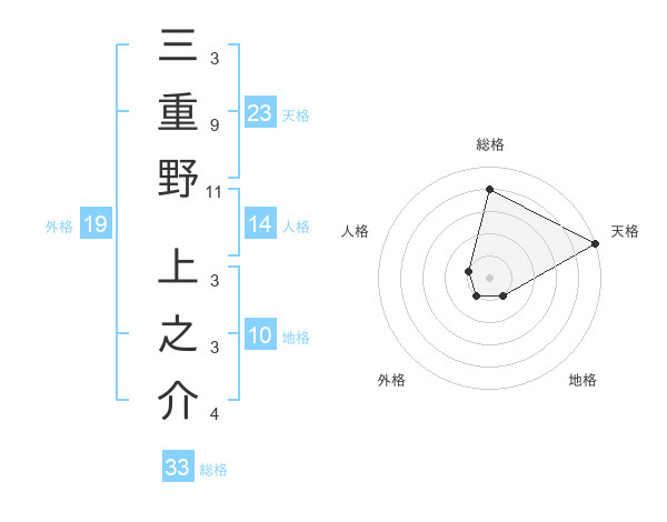 三重野 上之介さんを姓名の画数から五運を鑑定