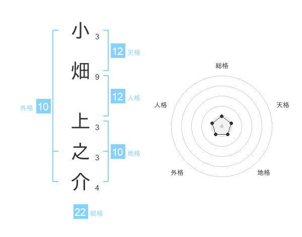 小畑 上之介さんを姓名の画数から五運を鑑定